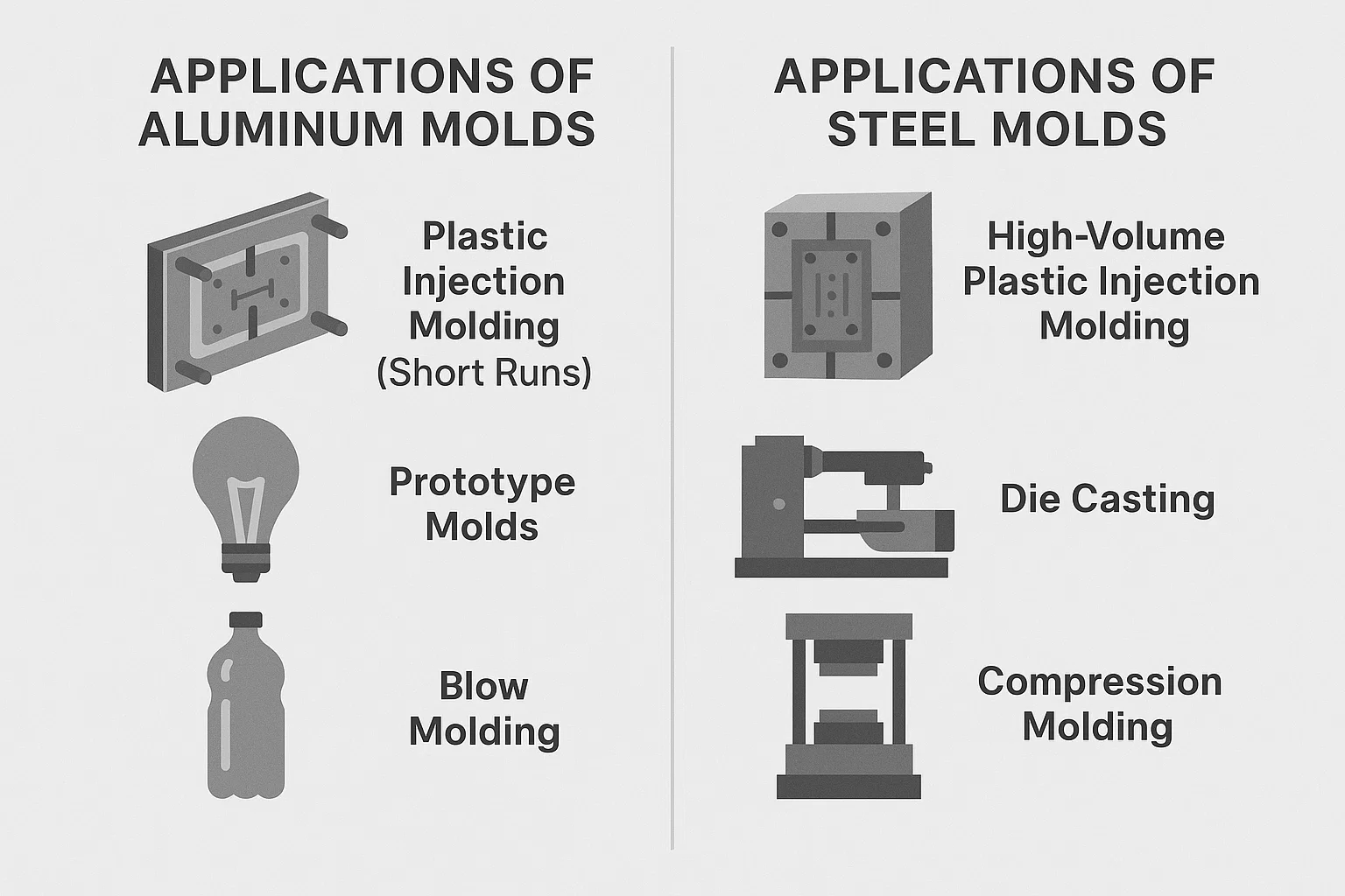 Viktiga skillnader mellan aluminium och stålformar