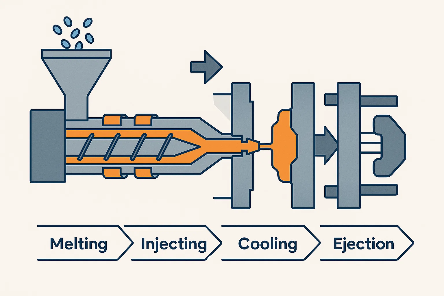 Processen för formsprutning följer en exakt och cyklisk sekvens: