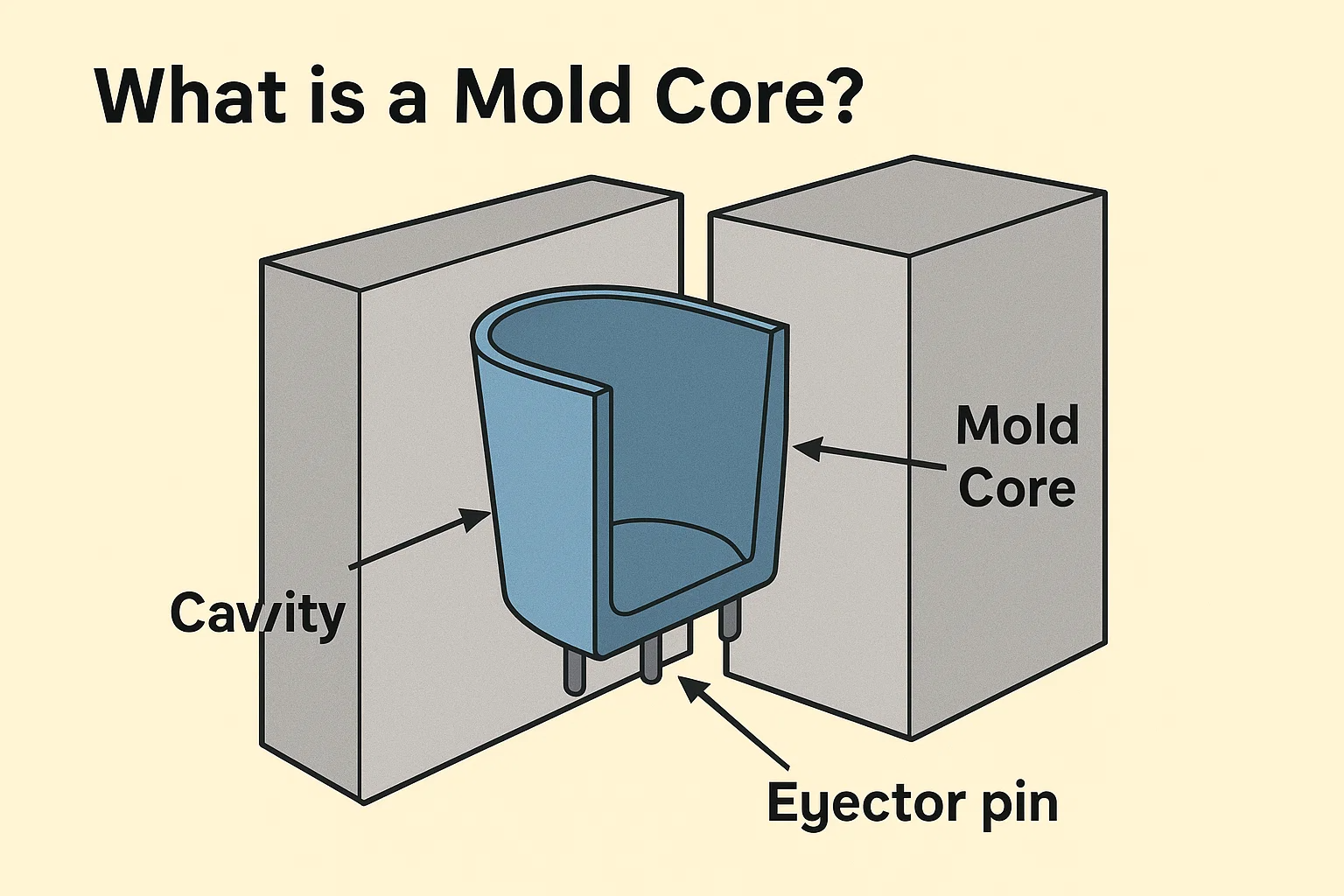 De mögelkärna , även känd som "B-sidan" eller "kärnhalva" av formen, är komponenten som bildar interna funktioner av en plastdel. När formen är stängd passar kärnan in i kaviteten och skapar det utrymme som den smälta plasten injiceras. Tänk på det som en stans som skapar de ihåliga eller infällda områdena inom en del.