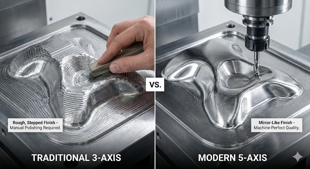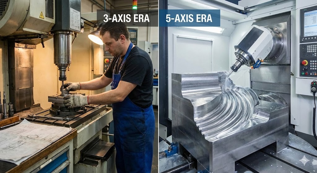 Utvecklingen mot 5-axlig skärning representerar ett paradigmskifte i hur vi närmar oss formdesign . Till skillnad från 3-axliga maskiner flyttar 5-axliga centra ett verktyg eller en del på fem olika axlar samtidigt (X, Y, Z, plus A- och B-rotationsaxlarna).